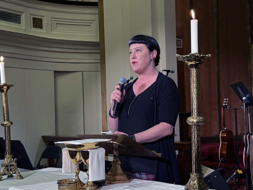 Becky Hope attends a retreat for digital congregants of Good Shepherd New York in New York City. (Photo by Alex Scott)