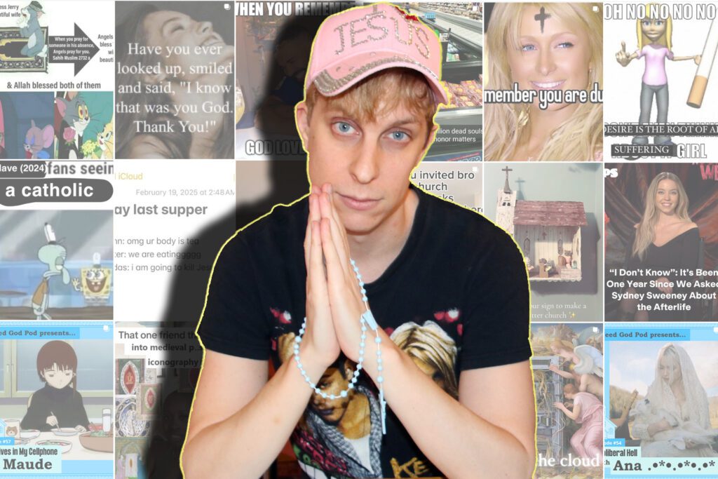 For Hide, who is known online and on his podcast “I Need God Pod” as “God-lover Kyle,” memes are more than just content striving for virality; they are a form of meaning-making. Posting under the persona allows Hide, who lives in Brooklyn, New York, to maintain both intimacy and distance from followers, he said.
